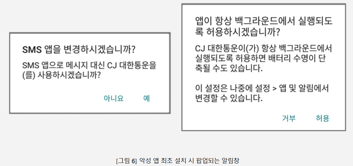• 스미싱으로 휴대폰에 악성 앱을 설치