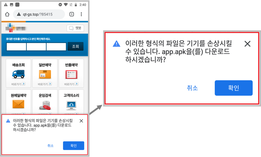 • 실제로 앱 설치를 유도해 통장·카드 정보까지 탈취