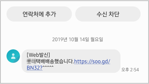• “택배가 반송되었습니다. 확인하려면 링크 클릭”