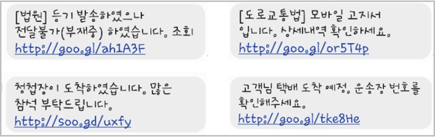 • ‘SMS(문자 메시지)’와 ‘Phishing’의 합성어.