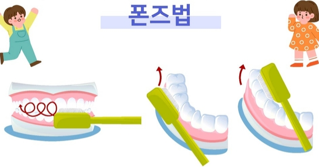 - 치아 면을 쓸어내리듯이 치아를 닦아주는 양치법
