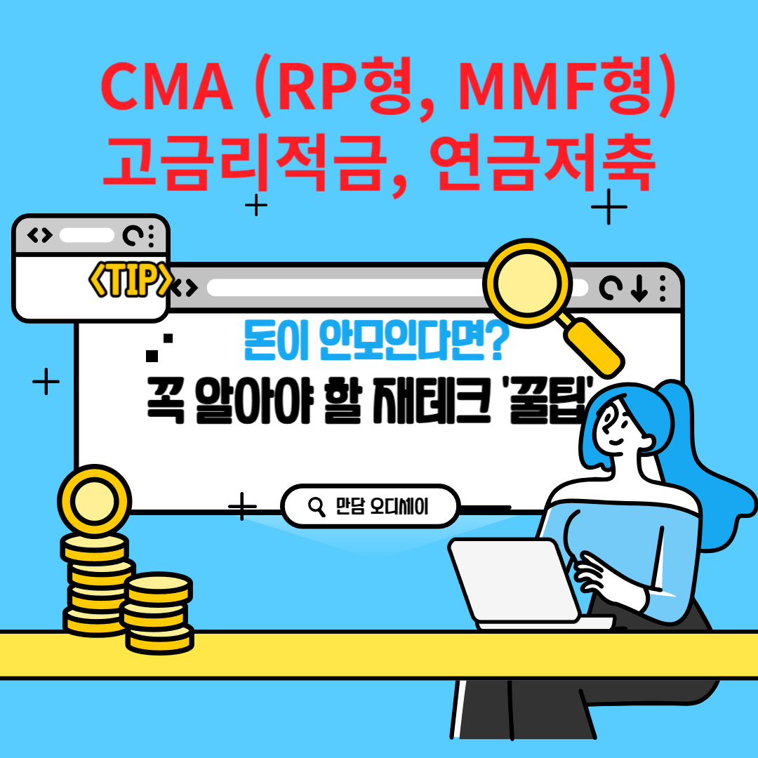 돈 모으기 쉽지 않습니다. 혹시라도 여유 있게 사용해도 될 금전이 갑자기 생겨도, 미루어두었던 필수품이나 경조사등 매달 써야 할 일들이 그에 맞게 생깁니다. 따라서 조금 강제적으로라도 자산을 조금씩, 부담 없이 모아서 키울 수 있는 재테크가 필요합니다. 월급 내지 수입금과 자동연결되는 계좌의 누적방식은 인식하기도 전에 자신의 자산이 목돈으로 쌓여 있게 할 것입니다. 더 이상 미루거나 생활비도 부족하다고 망설이지 마시고, CMA (RP형, MMF형)와 고금리적금, 연금저축등 각 상품의 장단점을 비교분석하여, 자신의 목표와 상황에 맞게 재테크를 설계하시길 바랍니다.😁